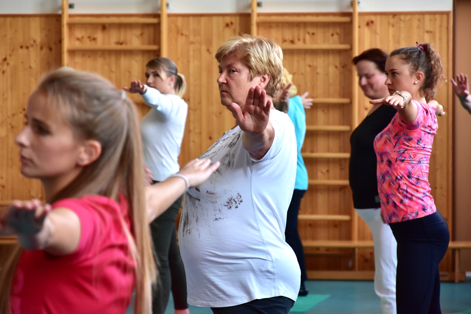 Dále si kolem 35 převážně účastnic mohlo zacvičit se cvičební pomůckou Daflex a vyzkoušet metodu Daflex systém s Drahomírou Bártovou, cvičitelkou olomoucké TJ ČASPV. Zatančit spolu s Lenkou Fasnerovou z Centra pohybu a vyzkoušet si prvky sebeobrany s Adamem Suchánkem. Program byl doplněn teoretickou přednáškou Báry Řehové „Za horizontem mysli …“.